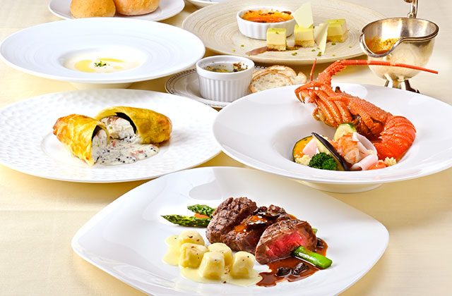 〇サイコロステーキ 和風おろしソース&オマールクロケット・季節魚のセモリナフリット