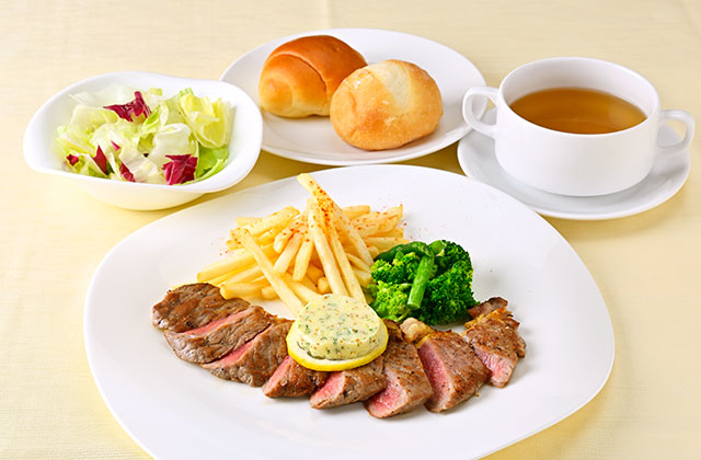 特別なソースで召し上がるシャリアピンステーキ。※平日は限定20食